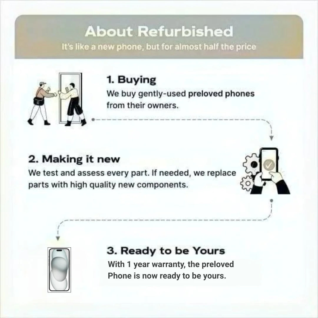 A second-hand phone is an original branded device that has been used before. A lookalike phone is a copy that only looks like the original but is not made by the official brand. Certified refurbished phones come with a 6-month warranty and 3 day replacement policy. Second-Hand Phone: Simply a used phone without any warranty, refund, or replacement options.